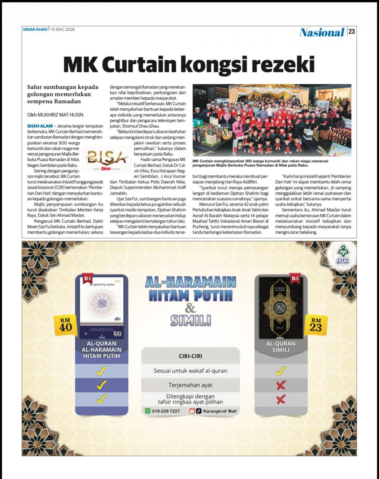 17032026_SINAR HARIAN_MAJLIS BERBUKA PUASA - MK CURTAIN CSR